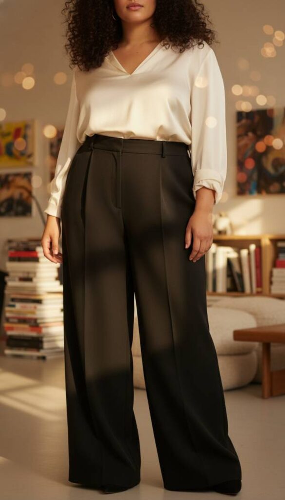 Embrace a silhouette of refined power with wide leg tailored trousers. Their expansive cut offers a dramatic, flowing line that elongates the leg and provides unparalleled comfort. Crafted from a premium wool blend or a sophisticated crepe, the fabric drapes beautifully, lending an air of understated luxury. These trousers move with an effortless grace, making a strong fashion statement while ensuring ease of movement. They are a cornerstone of a polished winter wardrobe, blending professional elegance with contemporary flair. The smooth fabric feels substantial and of high quality.