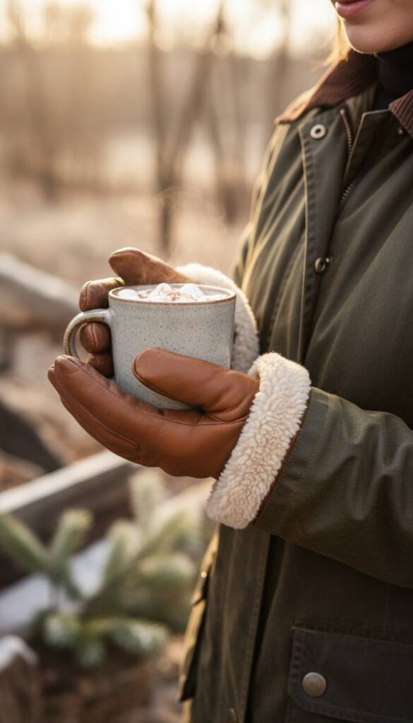 Keep hands wonderfully warm with shearling lined mittens, their luxurious sheepskin interior offering an incredibly soft and insulating embrace. The outer leather, often in a rich tan or deep brown, develops a beautiful patina over time, adding to their rugged charm. The woolly shearling feels sumptuously soft against the skin, providing immediate comfort in chilly weather. These mittens feel substantial and cozy, essential for crisp morning walks or frosty outdoor adventures. They combine practical warmth with an undeniable touch of refined country style, feeling incredibly warm and plush.