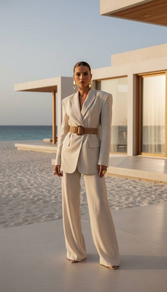For an evening look of unparalleled sophistication, wide leg silk trousers are an absolute essential. Their fluid drape and luxurious sheen exude an air of relaxed glamour, perfect for an upscale resort dinner or an evening event. Choose a pair in a deep jewel tone or a classic neutral for maximum versatility. The breathable silk ensures comfort in warmer climates, while the elegant silhouette provides a polished, refined appearance. Paired with a delicate camisole or a tailored crop top, these trousers are a power play for any lady seeking to combine comfort with high fashion elegance.