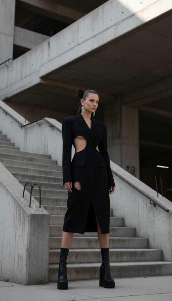 Make a bold fashion statement with the Avant Garde Blazer Dress, a masterclass in deconstructed tailoring that redefines formal wear. This innovative piece features a sharp, tailored silhouette with unexpected cutouts and asymmetrical detailing, creating a contemporary power look. Crafted from a premium suiting fabric, it maintains its structured form while offering a modern, edgy appeal. Ideal for a fashion forward birthday celebration or a high profile event, this blazer dress ensures you stand out with a sophisticated, intellectual charm. It is a testament to inventive design and impeccable craftsmanship, truly a conversation starter.