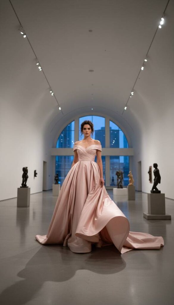 Command the room in the Voluminous Off Shoulder Gown, an exquisitely designed piece that merges sculptural artistry with dramatic elegance. This gown features a striking off shoulder neckline and a dramatically draped silhouette, creating an architectural yet ethereal presence. Crafted from a rich, flowing fabric with a subtle sheen, it ensures a luxurious feel and a truly breathtaking visual impact. Perfect for a grand birthday celebration or a gala event, this gown is a testament to high fashion design, offering a silhouette that is both powerful and inherently feminine. It is an unforgettable garment.