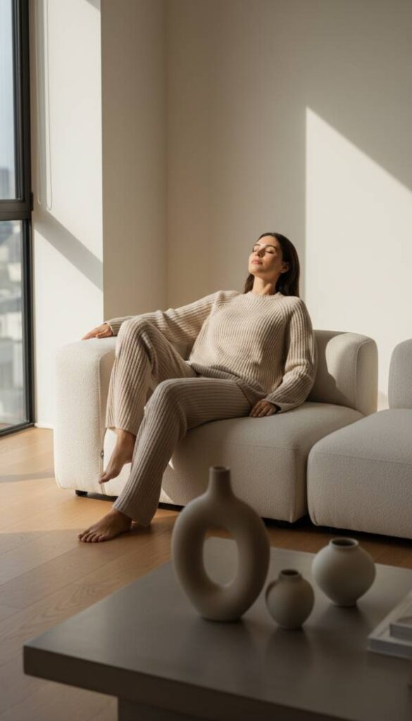 Experience unparalleled comfort and understated luxury with the Sumptuous Cashmere Knit Set, a quintessential example of the quiet luxury trend. This coordinated ensemble, comprising a finely knit top and complementary wide leg trousers, is crafted from exceptionally soft, pure cashmere. Its minimalist design and neutral palette allow the exquisite quality of the fabric and the impeccable tailoring to speak for themselves. Perfect for a refined celebration where sophistication is paramount, this set offers an effortless elegance that feels incredibly indulgent yet entirely unassuming. It is an investment in timeless style and supreme comfort.