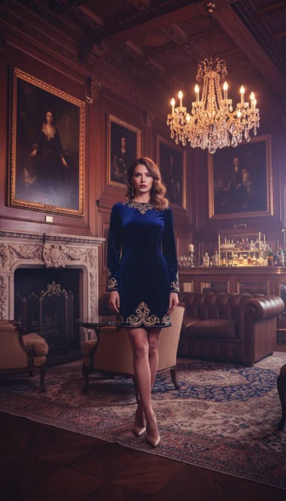 Indulge in the sumptuous luxury of the Regal Velvet Mini Dress, a garment that evokes baroque inspired opulence with a modern twist. Crafted from rich, deep toned velvet, this dress boasts an incredibly soft texture and a lustrous sheen. Its flattering mini silhouette is complemented by intricate, subtle embroidery or a jacquard pattern, adding an element of historical grandeur without feeling dated. Perfect for a glamorous birthday cocktail party or a sophisticated night out, this dress ensures a regal and captivating presence, making you feel every bit the celebratory queen. It is an exquisite choice for true elegance.