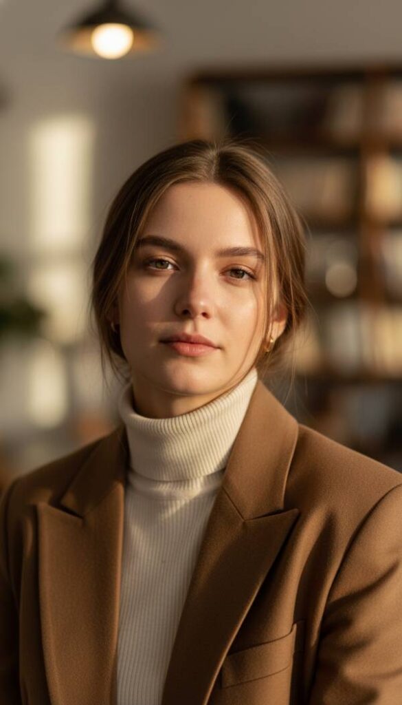 A fine knit turtleneck sweater, crafted from luxurious merino wool or soft cashmere, offers an exquisite layer of warmth and sophisticated texture. Its gentle embrace around the neck provides a chic, minimalist base for a brown blazer. The delicate ribbing or smooth weave feels incredibly soft against the skin, promising comfort without bulk. Available in rich neutrals like charcoal, black, or even a complementary camel, it creates a seamless transition from the neck to the blazer lapels, offering a streamlined and elegant profile. This piece is a testament to understated luxury.