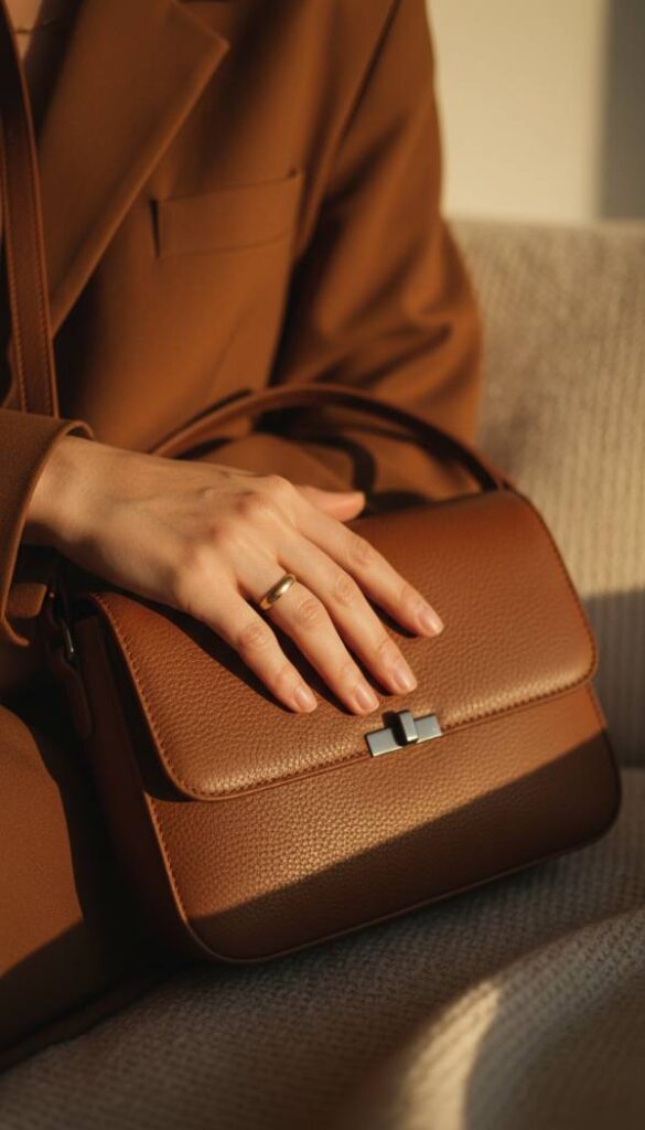 A structured crossbody leather bag is the epitome of practical elegance, offering hands free convenience without sacrificing style. Crafted from rich, grain leather, its surface holds a pleasing firmness, while the subtle aroma of the material speaks of quality. The compact yet efficient design perfectly accommodates daily essentials, ensuring everything is within easy reach. Its clean lines and often minimalist hardware complement the refined aesthetic of a brown blazer, providing a sophisticated accessory that elevates the entire ensemble. The soft, buttery feel of the strap against the shoulder is a comfort.