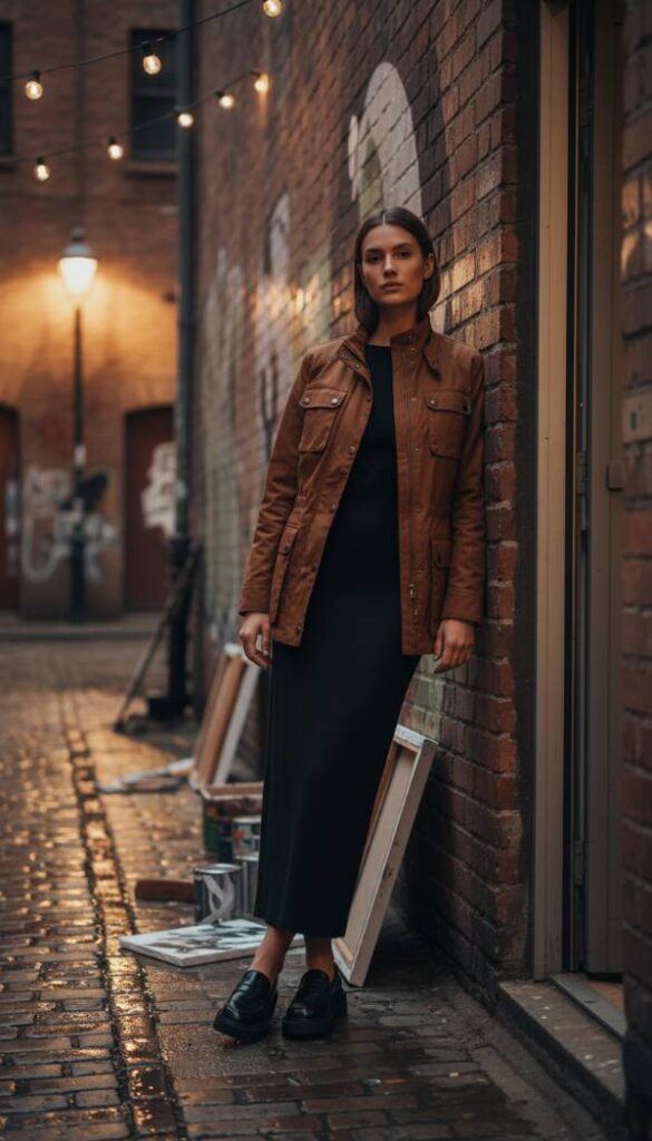 For a blend of practicality and polish, the brown waxed cotton utility jacket is an undeniable must have. This versatile piece, with its subtle sheen and durable construction, elevates everyday dressing. Layer it over a sleek, fine knit column dress in a neutral tone like taupe or stone. Ground the look with chunky, platform loafers or refined ankle boots, and complete it with a minimalist leather belt bag worn across the body. This ensemble masterfully combines functional aesthetics with high fashion sensibilities, ideal for exploring bustling cityscapes or navigating a stylish countryside retreat, embodying effortless cool with a sophisticated edge.
