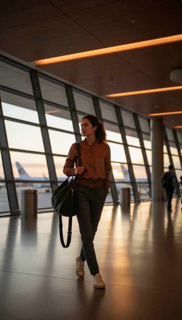 Elevate athletic aesthetics with a brown track jacket inspired bomber, crafted from a luxurious silk blend or fine merino wool for 2026. This piece offers a sophisticated take on sportswear, combining comfort with undeniable style. Pair it with impeccably tailored, athletic inspired trousers that feature a subtle side stripe or a relaxed fit. A silk camisole or a delicate lace trimmed top beneath adds a touch of feminine allure. Complete the look with sophisticated, minimalist sneakers or sleek ankle boots. This ensemble is perfect for stylish travel or a creative professional setting, embodying a fusion of comfort and high end fashion.