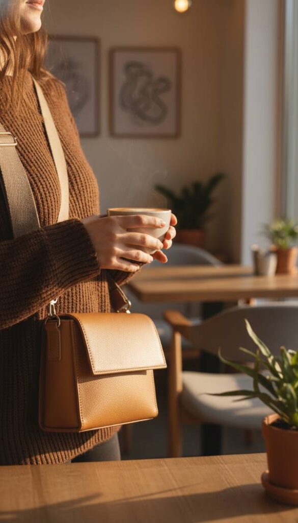 A structured crossbody bag is the quintessential accessory for the clean girl aesthetic, combining practicality with polished design. Made from smooth, firm leather, it holds its shape beautifully and feels substantial yet comfortable to carry. The rich, natural scent of leather hints at its quality. Its clean lines and minimal hardware reflect light in a sophisticated manner, making it an elegant companion. The weight of the bag feels balanced and secure against the hip, offering hands free convenience.