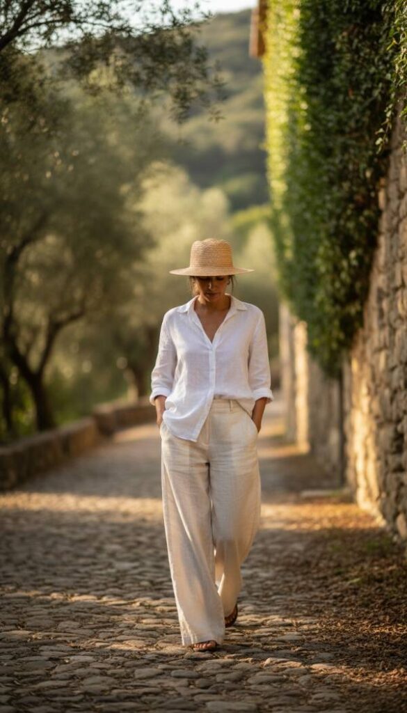 Wide leg linen pants epitomize relaxed sophistication, offering an airy, breathable comfort ideal for warmer seasons. The natural linen fabric feels wonderfully crisp yet softens beautifully with wear, creating a relaxed, lived in texture. Its subtle slub variations catch light, adding visual interest. The generous wide leg cut allows for graceful movement and an elegant drape, while the natural fibers feel cool and light against the skin. They exude an understated, vacation inspired charm.