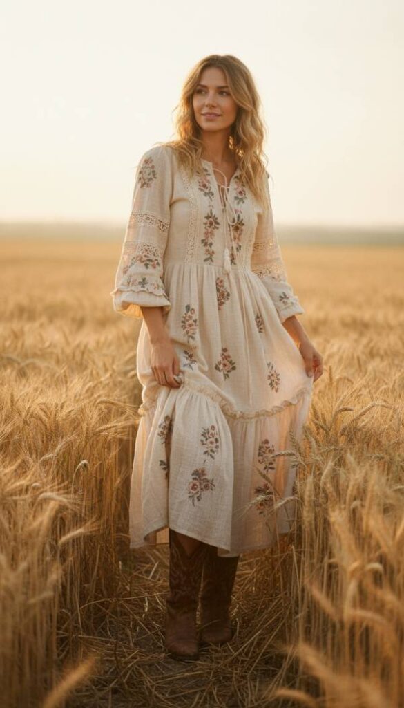 The marriage of rugged authenticity and sophisticated femininity creates an undeniably captivating aesthetic. For seasons, the seemingly disparate elements of a flowing dress and sturdy cowboy boots have converged, forging a style lexicon that speaks to both audacious spirit and refined taste. This iconic pairing transcends fleeting trends, offering a timeless allure that is both comfortable and chic, perfect for any discerning fashion enthusiast seeking a harmonious blend of prairie romance and urban edge.