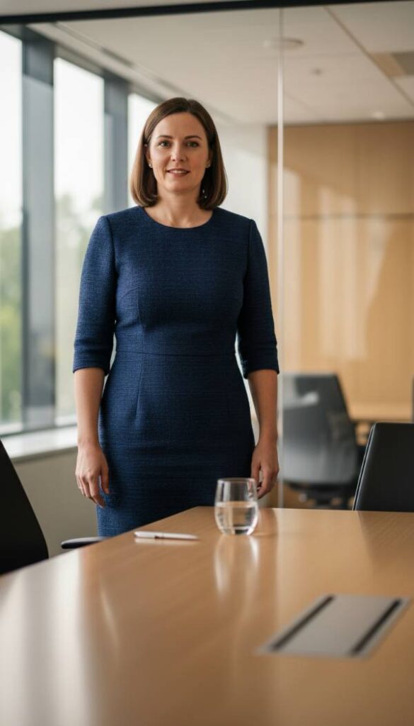 Envelop yourself in the impeccable tailoring of a structured sheath dress, a garment synonymous with professional polish and timeless sophistication. Crafted from a refined stretch suiting fabric, this dress offers a flattering fit that gently skims the body without clinging, providing both comfort and a sleek silhouette for the mid size woman. Its simple, elegant lines are enhanced by thoughtful darting that defines the waist and hips. The fabric possesses a subtle sheen, hinting at its quality, and a reassuring weight that drapes beautifully. This piece is a versatile wardrobe cornerstone, effortlessly transitioning from pivotal business meetings to sophisticated after work engagements with a simple change of accessories.