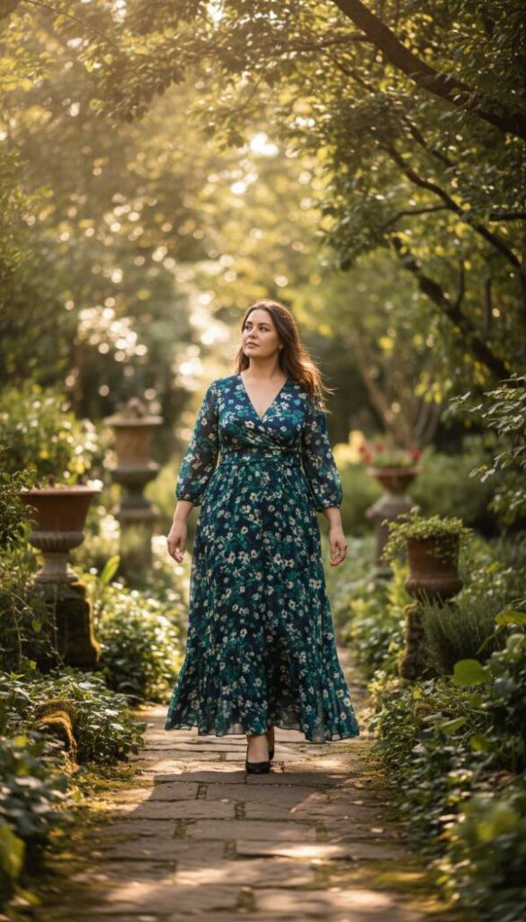 Feel the luxurious embrace of a true wrap dress, its sumptuous silk jersey fabric molding to your contours with unparalleled elegance. This iconic silhouette, celebrated for its figure flattering prowess, allows for adjustable cinching at the waist, effortlessly creating an hourglass shape for the mid size woman. The deep V neckline is both sophisticated and alluring, while the full skirt cascades gracefully to just below the knee, offering modest yet stylish coverage. Imagine the fabric’s cool, smooth sensation against your skin, its rich jewel tone shimmering under varied lighting. This dress is a testament to confident femininity, perfect for evening events or a memorable date night.