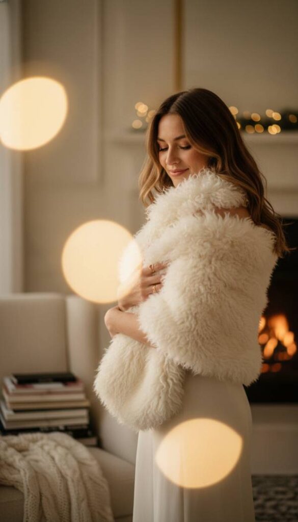 Elevate any ensemble with the opulent warmth of a faux fur stole or shawl. Its incredibly soft, plush texture provides a luxurious sensory experience, a gentle hug against the shoulders that feels both comforting and extravagant. Imagine the silky fibers caressing your skin, offering a sophisticated layer of warmth against crisp winter air. Whether draped over a simple dress or a tailored suit, the stole adds an instant touch of old world glamour and undeniable elegance. Its rich visual appeal and delightful softness make it an indispensable accessory for any winter wedding, completing the look with refined charm.