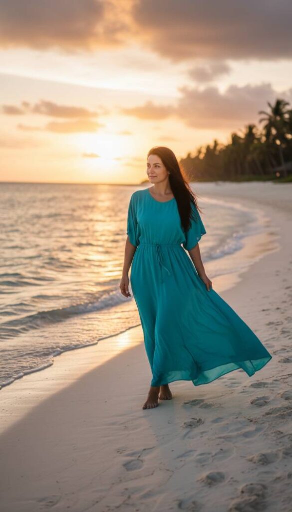 Experience ultimate luxury and comfort with a modern kaftan maxi dress, a sophisticated evolution of a timeless silhouette. Fashioned from flowing georgette or a silk blend, this dress features an elegant, generous cut that drapes effortlessly over the body, providing absolute comfort and disguising the midsection while offering an ethereal grace. The deep V neckline elongates the torso, and subtle waist ties (optional) can be adjusted to gently define the waist without constriction. Ideal for resort wear or chic summer evenings, it embodies an understated yet opulent aesthetic, perfect for the discerning woman.