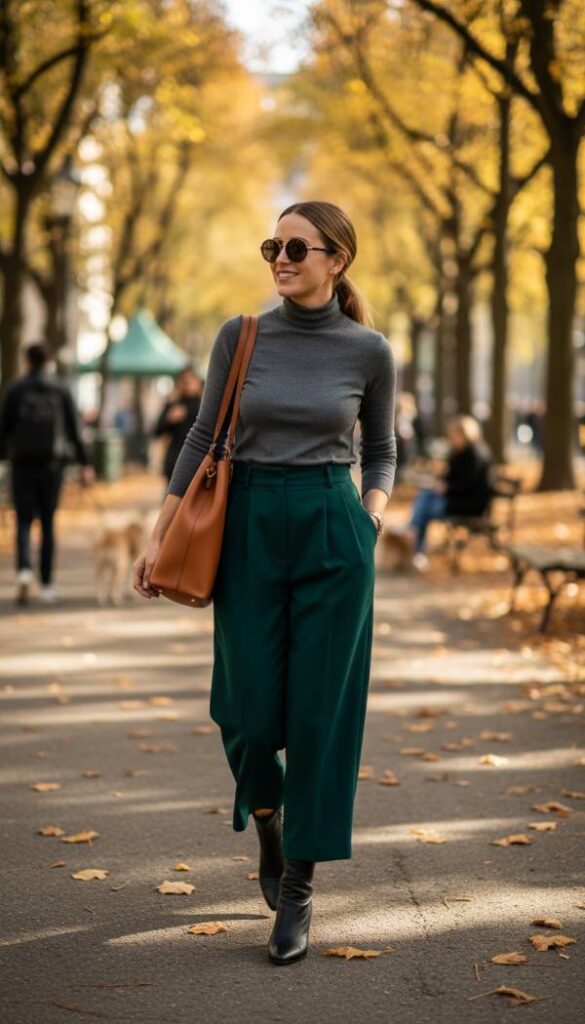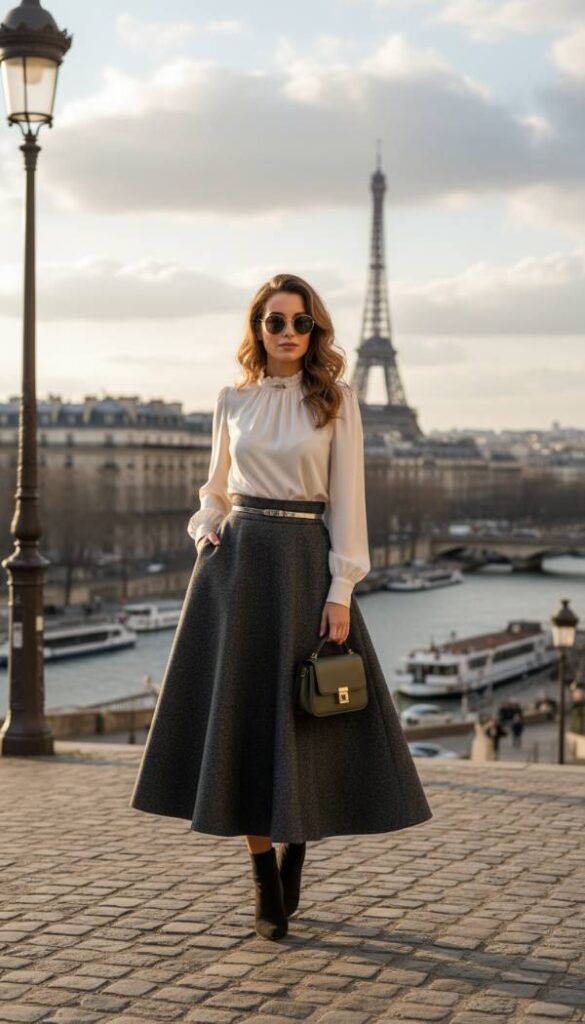 For a comfortable yet exceptionally stylish alternative to skirts or traditional trousers, high waisted pleated culottes are a 2026 must have. Made from a flowing crepe or lightweight wool, these culottes feature crisp, wide set pleats that fall gracefully from a defined high waist, creating volume and movement that cleverly disguises the tummy area. Their cropped length offers a modern, sophisticated appeal, perfect for showcasing elegant footwear. They provide a relaxed fit without sacrificing polish, making them ideal for both office wear and refined weekend ensembles, embodying effortless chic.