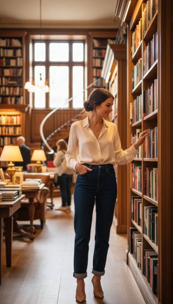 For a refined take on denim, opt for dark wash straight leg jeans with a meticulously designed high rise. The higher waist provides excellent tummy control and elongates the legs, while the straight leg cut offers a clean, uncluttered line that is both classic and on trend for 2026. Made with a comfortable stretch denim, these jeans maintain their shape without feeling restrictive. Their deep indigo hue offers a dressier alternative to lighter washes, making them suitable for pairing with elevated blouses or sleek knitwear for a polished yet relaxed ensemble.