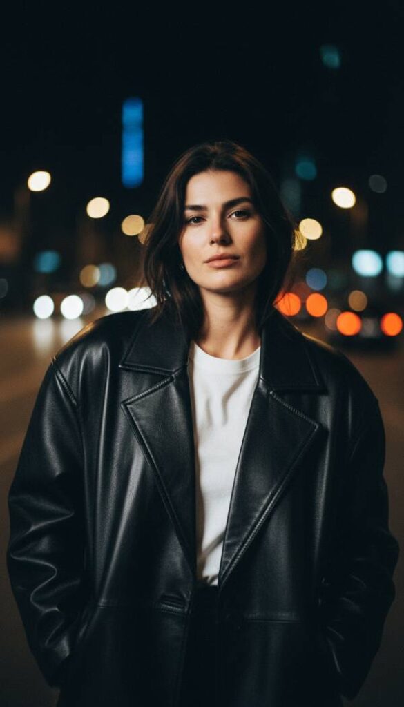 Swap the fitted moto jacket for a boxy, oversized leather blazer or bomber. This silhouette borrows from the boys but looks incredibly chic when draped over feminine pieces like slip dresses. The rigid leather structure contrasts beautifully with soft skin and delicate fabrics. It gives off an effortless cool girl energy that suggests you just threw it on and happened to look amazing. Black is classic, but deep espresso brown is the trendy choice for 2026. It adds an edge to minimalism, preventing the style from becoming too safe or predictable.