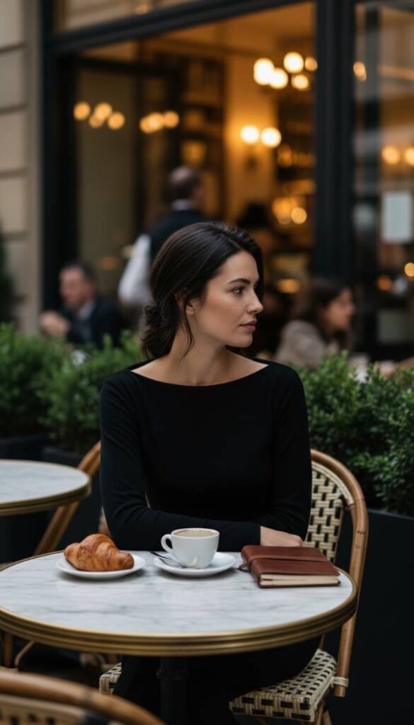 The boat neckline, or bateau, creates a horizontal line across the collarbones that is universally flattering and deeply elegant. It draws inspiration from classic ballet attire and French girl style. This top creates a seamless silhouette when tucked into high waisted trousers or skirts. It is modest yet alluring, revealing just a hint of skin at the neck and shoulders. Stick to stripes or solid black to keep it timeless. The tight fit balances out looser bottoms, ensuring your figure is not lost in fabric. It is pure sophistication.
