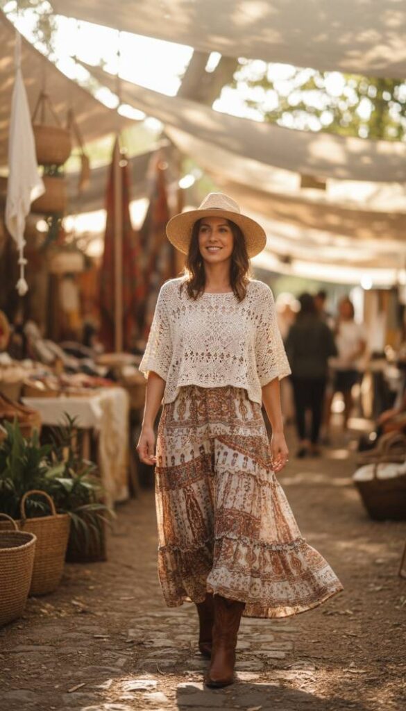 Ankle Boots With A Flowy Maxi Skirt Ensemble