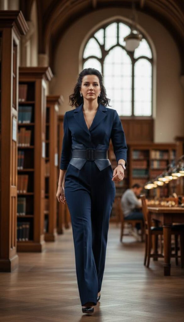 Embrace effortless sophistication with this streamlined power jumpsuit, an all in one solution for a polished and professional look. Designed with impeccable tailoring, this jumpsuit offers a clean, unbroken line that elongates the silhouette, creating an undeniably elegant presence. A structured belt often accompanies it, cinching the waist for a flattering shape and adding a refined touch. It provides the ultimate convenience without sacrificing style, making it a perfect choice for busy educators. This piece allows for comfort and ease of movement while maintaining a sharp, contemporary aesthetic, suitable for any demanding academic schedule.