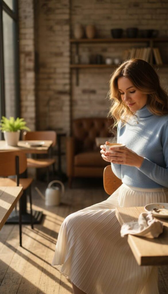 Imagine the gentle sway of a finely pleated midi skirt crafted from lustrous silk or a high quality satin. Its delicate accordion folds catch the soft morning light, creating a mesmerizing dance of shadows and highlights with every step. Paired with a form fitting cashmere knit in a complementary hue, this ensemble exudes an approachable luxury. The fabric feels whisper soft against the skin, offering both comfort and an undeniable polished appeal that is perfect for any discerning woman’s wardrobe. The subtle sheen adds a touch of opulent glamour.
