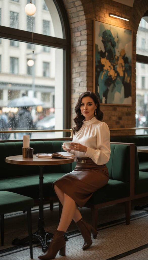 Introduce an edgy yet refined texture to your Valentine’s Day wardrobe with this rich chocolate faux leather pencil skirt. The luxurious feel and deep, warm hue offer a sophisticated alternative to classic black, exuding understated cool. Its form fitting silhouette accentuates the figure beautifully, while the supple faux leather ensures comfort and a sleek finish. Pair it with a delicate silk camisole or a fine gauge knit sweater for a balanced ensemble. This piece effortlessly blends contemporary style with timeless elegance, perfect for a chic evening out or a stylish daytime rendezvous.