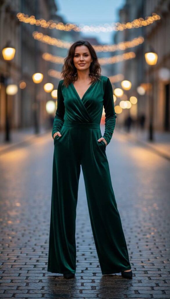Step into the night cloaked in the rich, deep texture of a velvet wide leg jumpsuit. The fabric’s inherent sheen plays beautifully with light, shifting from a matte sophistication in shadow to a luminous glow under direct illumination, creating a captivating visual effect. Its flowing silhouette offers both dramatic impact and remarkable comfort, allowing for uninhibited movement on the dance floor or during an elegant dinner. The soft, plush feel against the skin is an added luxury, making you feel effortlessly glamorous. This single piece instantly forms a complete, polished look that is both modern and timeless, ensuring a memorable presence at any social gathering.