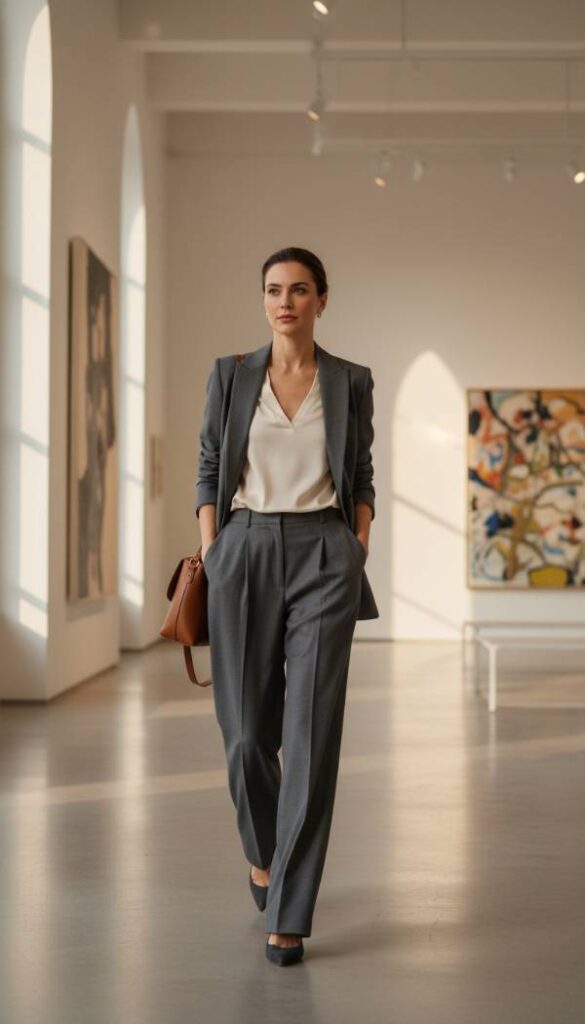 Embrace refined sophistication with tailored wide leg trousers, a testament to impeccable design and enduring style. Crafted from a premium wool or crepe blend, their fabric offers a beautiful drape and a subtle, sophisticated texture. The generous wide leg silhouette creates a long, graceful line, enhancing your height and adding a touch of dramatic flair to your movements. These trousers provide both exceptional comfort and a polished appearance, making them ideal for an elegant dinner or a formal event. Paired with a fitted top or a flowing blouse, they offer a powerful, contemporary aesthetic that speaks volumes about a woman’s confident and discerning taste.