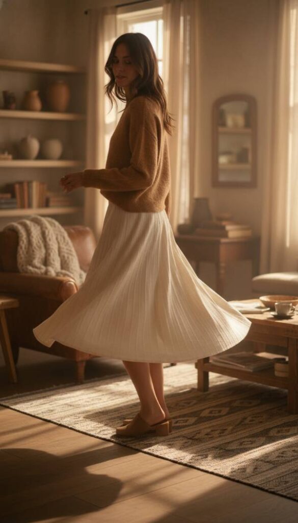 Discover the timeless charm of a wool blend pleated midi skirt, a piece that marries classic elegance with modern sensibility. The finely woven fabric, with its delicate texture, provides a substantial yet flowing drape, creating graceful movement with every step. Its subtle warmth is perfect for cooler evenings, while the meticulous pleats add a sophisticated structure that catches and releases light beautifully. Whether in a muted plaid or a solid jewel tone, this skirt offers versatile styling options, pairing perfectly with a delicate silk blouse or a chunky knit sweater. It’s a garment that speaks volumes about refined taste and enduring style, suitable for any elegant winter occasion.