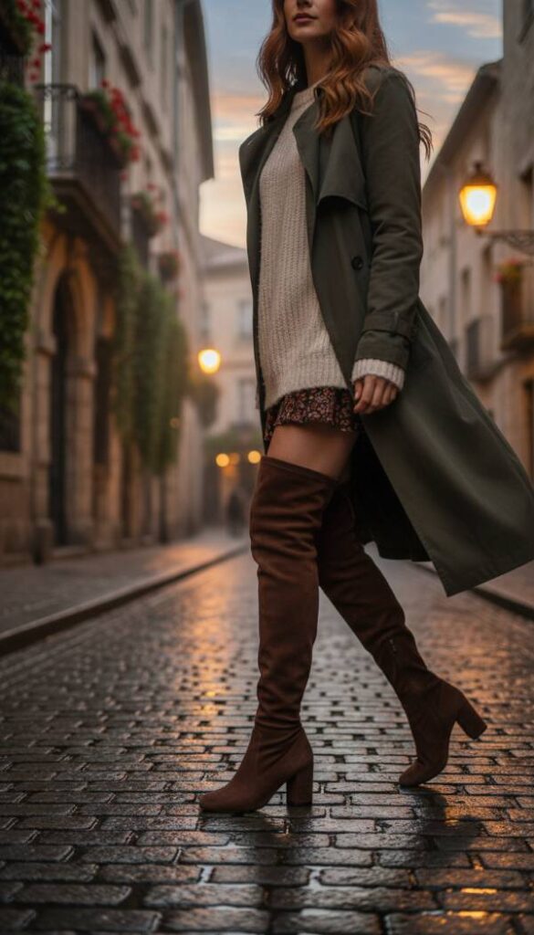 Elevate your look with the commanding elegance of over the knee suede boots. Their soft, velvety texture provides a luxurious feel, extending gracefully up the leg to create a statuesque line. The muted sheen of the suede absorbs light, lending a sophisticated, rich depth to their color, be it a classic black or a deep taupe. These boots offer a surprising warmth, making them practical for chilly nights while remaining undeniably chic. The comfortable yet firm fit ensures they stay in place, allowing you to move with confidence and poise. They are the perfect complement to short dresses or skirts, adding an instant touch of refined allure.
