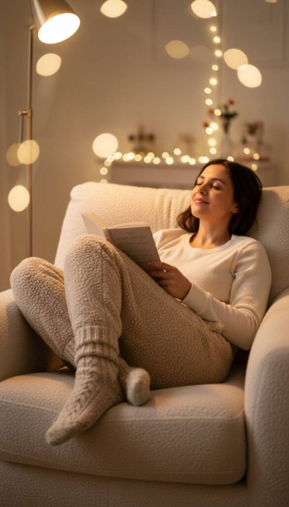 Immerse yourself in the ultimate tactile comfort of a sherpa fleece sweatpant in a warm, natural beige. Its incredibly soft, textured surface feels like wearing a cloud, providing exceptional warmth and an inviting coziness. The fabric is wonderfully lightweight despite its insulating power. Paired with a simple long sleeve thermal top and thick wool socks, this ensemble is perfect for snuggling up by the fire on the coldest winter evenings.