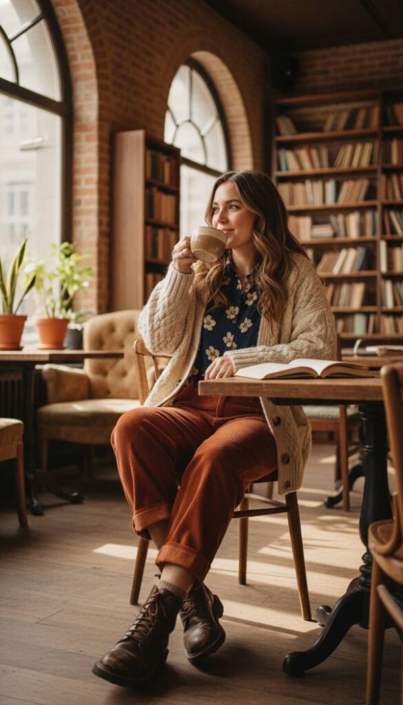 Embrace a playful yet sophisticated blend of vintage inspired charm with this eclectic grandpa aesthetic, reimagined for the modern winter wardrobe. Select relaxed fit, wide wale corduroy trousers in a rich rust or forest green, providing texture and warmth. Layer a vibrant, patterned button down shirt (think subtle geometric or abstract designs) under an oversized, chunky knit cardigan in a contrasting yet complementary color. Add a textured wool beanie for an extra touch of quirky comfort. Ground this distinctive look with sturdy, distressed leather work boots, reflecting a lived in, authentic character. This ensemble is artful, cozy, and effortlessly cool for casual work days.